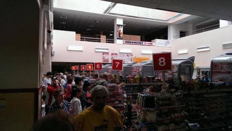 Біля кас вишиковуються величезні черги бажаючих отоваритися на гривні.