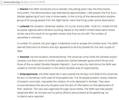 Спеціальна місія спостереження від ОБСЄ заявляє, що причиною вибуху в Луганській обласній державній адміністрації 2 червня став обстріл некерованими ракетами, запущеними з літака.