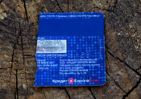 Як повідомила прес-служба Міністерства внутрішніх справ, в одному із залишених бліндажів терористів поблизу селища Закотне військовослужбовці знайшли уламок кредитної картки ЗАО "Кредит Европа банк" та касовий чек, роздрукований в одному з найбільш віддалених регіонів Російської Федерації.
