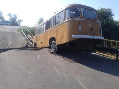 На автодорозі Т-1315 "Райгородка-Михайлівка" біля села Трьохізбенка під Луганськом вибухом пошкоджено міст через річку Сіверський Донець.