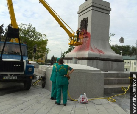 У Харкові в ніч із 13 на 14 липня невідомі облили фарбою постамент пам'ятника Незалежності України на площі Конституції.