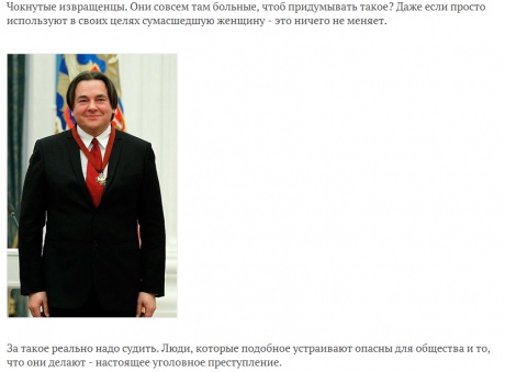 "Схиблені збоченці. Вони зовсім там хворі, щоб придумувати таке? Навіть якщо просто використовують у своїх цілях божевільну жінку - це нічого не змінює", - написав він і розмістив фото генерального директора каналу Костянтина Ернста.
