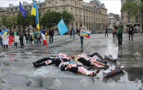 В акції взяло участь близько 50 представників української та кримськотатарської громади, французів і представників інших національностей, що проживають у французькій столиці.