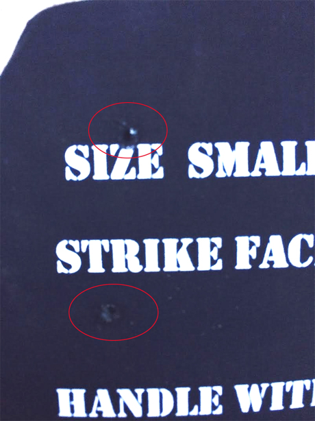 Однак пластини, які були в американських жилетах, не витримали ані пострілів кулями калібру 5.45 з АК-74, ані кулями калібру 7.62 з автомату Калашнікова АК-47, хоча на самій пластині написано, що вона має витримувати постріли кулями калібру 7.62.