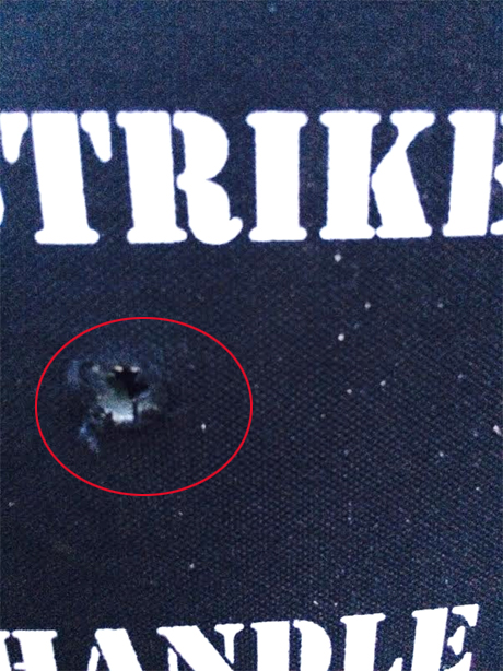 | Це інша пластина з такого ж бронежилета після потрілів |