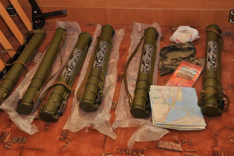 У ході обшуку за місцем тимчасового проживання затриманих було вилучено 6 гранатометів РПГ-18 ("Муха"), топографічні карти Дніпропетровська, маски-балаклави та інше спорядження для терористичної діяльності.