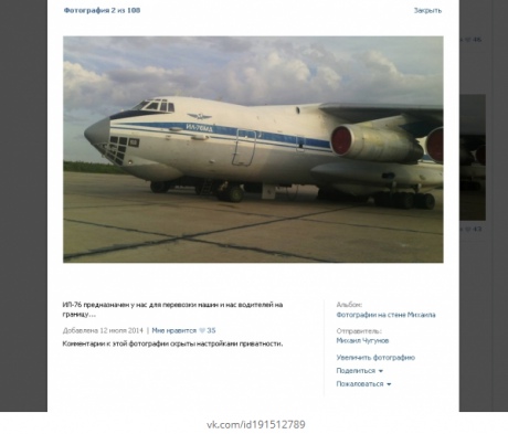 Крім цього, солодат з РФ поділився фотографією установок "Град" та літака ІЛ-76, який "призначений у нас для перевезення машин і нас водіїв на кордон...".