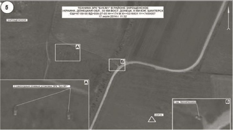 Він надав для порівняння супутникові знімки, зроблені українськими спецслужбами, та російські фальшовані знімки, надані міжнародній комісії в якості доказів нібито обстрілу літака українцями.