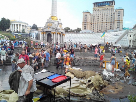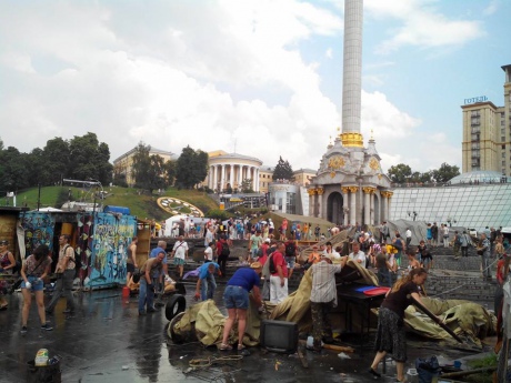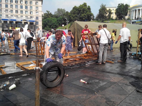 "Люди розбирають намети навколо Стели (Незалежності на Майдані)", - додав він.