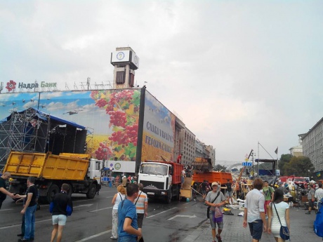 У центрі Києва в ході прибирання наметового містечка, барикад та конструкцій на Майдані рух по вул. Хрещатик станом на 15:00 повністю звільнено.