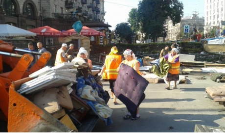На Майдані "толока": прибирають барикади, сутичок із залишенцями немає