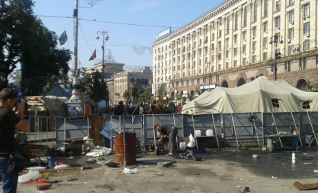 Як повідомили в ефірі 5 каналу, сутичок з залишенцями Майдану поки що не зафіксовано, попри це є сутички словесні з мешканцями наметового містечка.