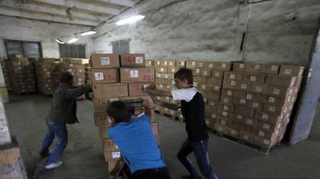 | "Гуманітарка" з другого "конвою", яку розвантажили на одному зі складів у Луганську. Фото Reuters |