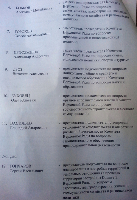 Серед депутатів ВР, які 17 вересня відвідали російську Держдуму були регіонали Володимир Олійник, Олена Бондаренко, Владислав Лук'янов, комуніст Олександр Голуб та навіть народна артистка України Таїсія Повалій.