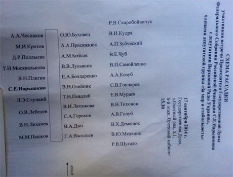 Список нардепів, який використовувався у Держдумі для розсаджування "гостей з України" має в своєму розпорядженні Укрінформ.