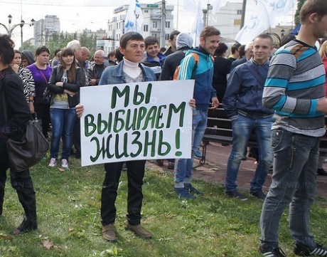 На мітинг 27 вересня зібрали близько 300 чоловік. Як расскаал один з організаторів заходу, який представився Олександром Рябець, які зібралися "виступають за мир в країні від" Інтернаціональної партії ".