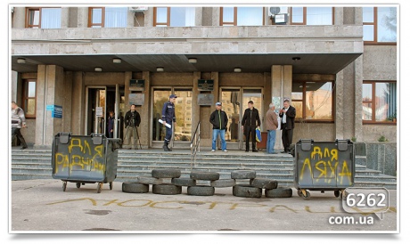 Активісти в Слов'янську заблокували міськвиконком, принесли шини та сміттєві баки.