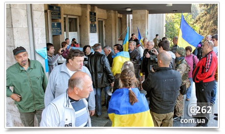 Після повідомлення, що сесії міськради, на якій мали розглядати кадрові питання, не буде, людей перед виконком тільки додалося.