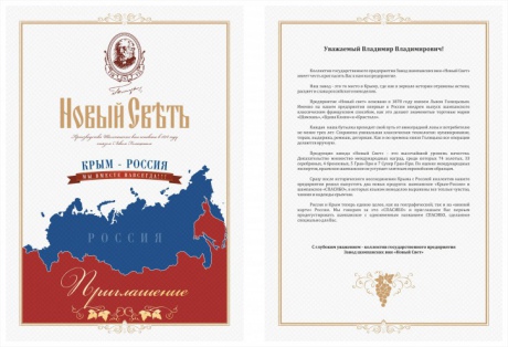 Уваги заслуговують зокрема документи, які стосуються нововведень в алкогольній промисловості півострова, серед яких урочисте запрошення Володимиру Путіну від заводу шампанських вин "Новий Світ".