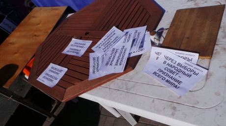 У Донецьку близько 100 осіб провели мітинг, на якому вимагали скасувати так звані вибори керівних органів громадської організації "Донецька народна республіка".