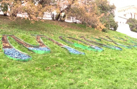 Замовлення виконувала компанія, яка відома озелененням центральних вулиць столиці, - ТОВ "Інженерні системи". За словами заступника директора фірми, напис не несе в собі ніякого політичного підгрунтя.
