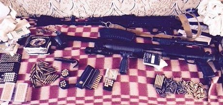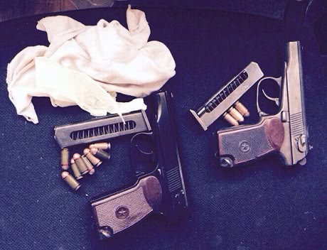 Під час обшуків у затриманих вилучено один автомат АК-74 та 30 патронів калібру 5,45 мм, два пістолети Макарова і 11 патронів до них, дві гранати (Ф-1 і РГД-5), один револьвер системи "Наган" і один револьвер іноземного виробництва.
