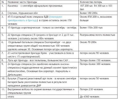 При цьому вона наводить приблизну кількість втрат у різних військах РФ.