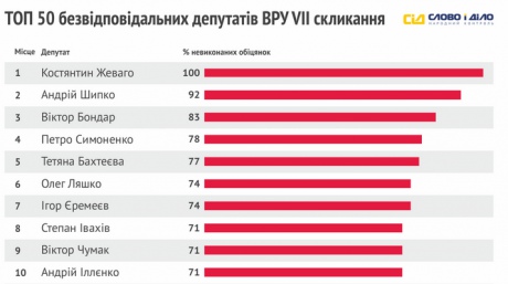Активісти склали ТОП-50 найбезвідповідальніших депутатів. Для збільшення клікніть на зображення. Інфографіка: slovoidilo.ua |
