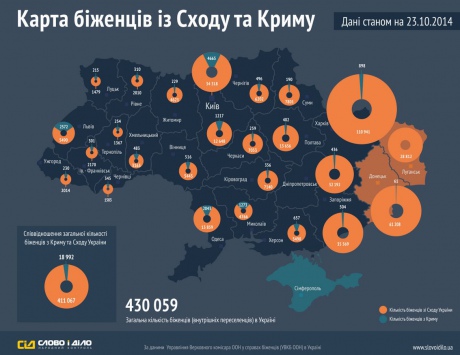 Так, згідно з даними управління верховного комісара ООН у справах біженців, у Києві оселилось майже 4,7 тисячі переселенців із Криму, у Київській області – ще 1,2 тисячі.