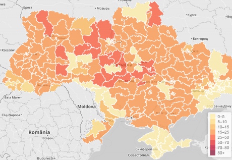 | Карта явки на виборах, найактивнішим є центр України. Скріншот із сайту oporaua.org |