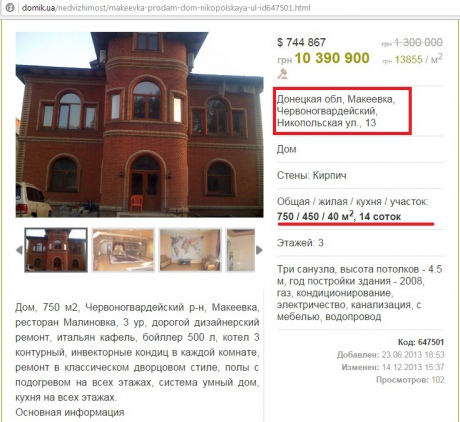 За даними видання, ціна цієї нерухомості на сьогоднішній день складає більше 10 млн грн.
