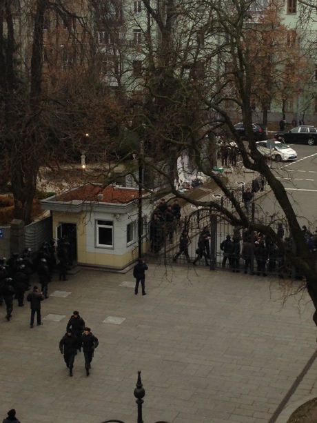 У свою чергу у столичній міліції повідомили, що у п'ятницю близько 15.00 до Адміністрації Президента, що на вулиці Банковій, підійшли близько 30 осіб. Невдовзі натовп розпочав ламати паркан, зазначили у МВС.