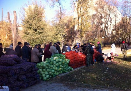 Як повідомляють журналісти та очевидці в соцмережах, прямо до виборчих дільниць терористи звезли мішки з овочами - їх можна купити по 1 грн., "якщо прийшов проголосувати за Захарченко".