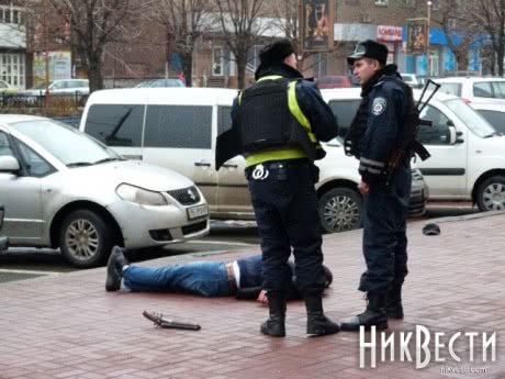 Як пізніше повідомили в миколаївській міліції, зі слів свідків події, невідомий чоловік вийшов із легкового автомобіля, вистрелив з обрізу у напрямку іншого чоловіка, який залишився в салоні машини, після чого вистрілив у себе.