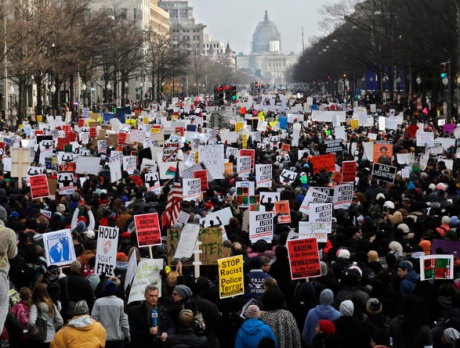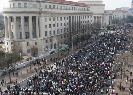 Демонстранти заповнити Пенсільванія-авеню, як вони пройшли до будівлі Капітолію США.