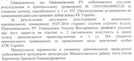 За його словами, старший слідчий слідчого відділу Шевченківського райуправління Тімонькін Олег встановив "відсутність в діянні складу кримінального правопорушення".