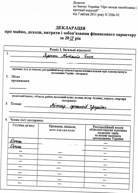 Яресько остання з членів Кабміну оприлюднила свої доходи. Вона пояснювала це тим, що повинна була отримати інформацію про свої доходи із США.