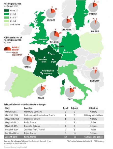 Видання після теракту у Парижі вирішило порівняти реальний відсоток мусульман в країнах Європи з тим, як його оцінюють європейці.
