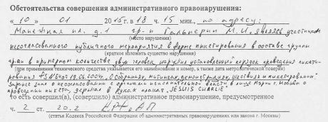 Як повідомив Гальперін, у протоколах обом написали, що їх затримали з плакатами Je suis Charlie.