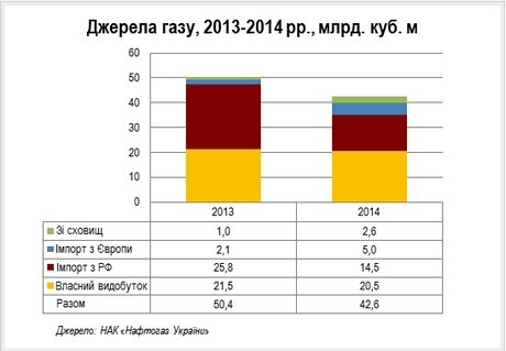 В 2014 році 46% потреб українських споживачів було забезпечено за рахунок імпортованого природного газу.