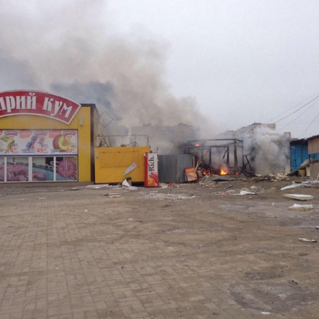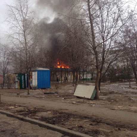 Одноповерховий магазин "Дитячий світ" повністю зруйновано прямим попаданням снаряду, горить церква на Східному.