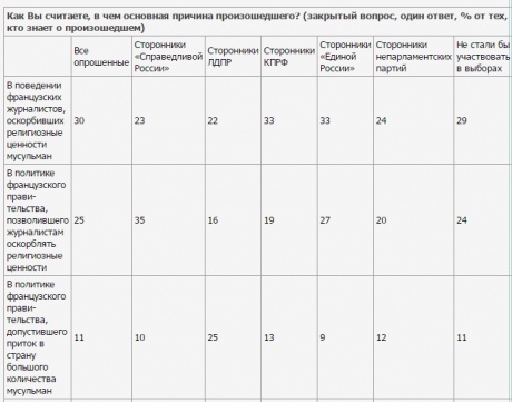І лише 8% росіян назвали причиною - поведінку кількох мусульманських екстремістів, що відповіли насильством на карикатури в тижневику.