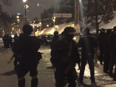 "7 лютого о 22:00 до Печерського райуправляння МВС надійшло повідомлення про бійку зі стріляниною на вулиці Грушевського. Правоохоронці прибули на місце події та затримали згаданих осіб на місці за вчинення хуліганських дій. Аби припинити правопорушення, довелось застосувати фізичну силу, оскільки хулігани почали чинити опір законним вимогам працівників міліції", - заявили в МВС.