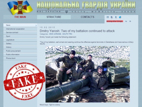 "Фейк видає і те, що Правий сектор воює на Сході як Добровольчий Український Корпус (ДУК) і не підпорядковується ані Нацгвардії, ані Міноборони. Сам Ярош, як нардеп, вважає за краще робити заяви у своєму Facebook, і офіційні сайти силовиків його не цитують", - зазначає ЗМІ.
