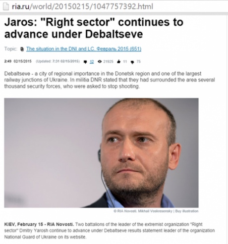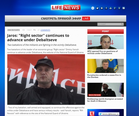 Вранці 15 лютого російські прокремлівські ЗМІ, у т. ч. РІА Новости, ТАСС, LifeNews, канал Міноборони РФ "Звезда" та інші, активно повідомляли про те, що батальйони "Правого сектора" атакують Дебальцеве.