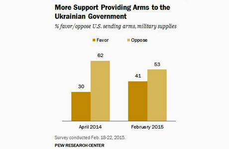Прихильників надання Києву зброї усе ще меншість, але їхня кількість за останній рік зросла на 11%.