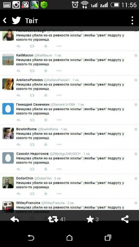 Тим часом у мережі ширяться серії повідомлень користувачів, більше схожі на "ботів", які дублюють дві з трьох версій слідства, озвучених СК РФ.