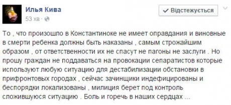 Як відомо, у понеділок у Костянтинівці бронемашина українських військових наїхала на жінку з двома дітьми, в результаті чого загинула 8-річна дівчинка.