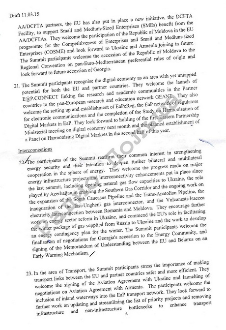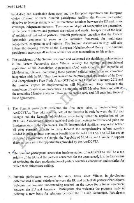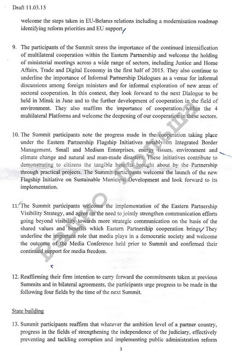 У редакції проекту декларації, датованій 11 березня, нічого не йдеться про європейську перспективу. Мова йде тільки про європейський вибір України, Грузії і Молдови.