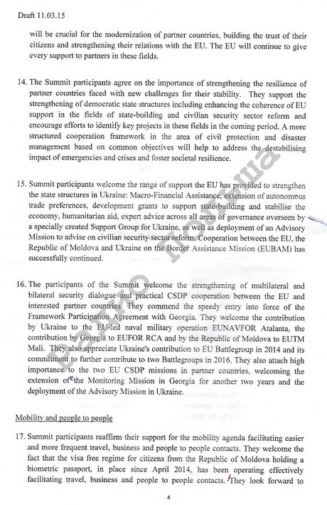 Конкретні дати реалізації безвізового режиму також не називаються. У проекті декларації зазначено, що прогрес залежить від проведених реформ.